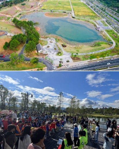 龍州濕地是九龍江流域山水林田湖草沙一體化保護(hù)和修復(fù)項(xiàng)目海綿城市建設(shè)范例工程,也是我市2023年十大重點(diǎn)攻堅(jiān)項(xiàng)目北部新城建設(shè)的“點(diǎn)睛之筆”,主要使用的是國(guó)家政策補(bǔ)助資金。項(xiàng)目占地面積約20公頃,通過“護(hù)山、理水、營(yíng)林、興田、清湖、豐草”六大舉措,構(gòu)建了蓄洪湖區(qū)、生態(tài)修復(fù)區(qū)、農(nóng)田區(qū)及休閑區(qū)多樣用地,同時(shí),設(shè)置了蓄洪湖、濕地步道、山谷攔蓄、引水工程等海綿設(shè)施,實(shí)現(xiàn)“城在田中田在城中”山水田園與城市和諧共生的美好景象。