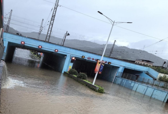 經(jīng)過現(xiàn)場察看,由于短時(shí)間降雨量太大,龍津河水位暴漲高于通道出口頂標(biāo)高,河水倒灌至下穿通道導(dǎo)致交通中斷,下穿通道水泵房三臺水泵全部啟動(dòng)抽水也無法滿足排水要求。公司防汛小組到達(dá)現(xiàn)場后,連夜組織人員拉好警戒線,設(shè)置警示標(biāo)志,防止車輛進(jìn)入下穿通道,并調(diào)度4輛應(yīng)急車輛及時(shí)排水并清洗路面;同時(shí),提前與鐵路部門、交警部門聯(lián)系,暫時(shí)封閉該段線路。經(jīng)過6小時(shí)的不斷抽水,路面已基本暢通,搶險(xiǎn)過程未發(fā)生任何險(xiǎn)情和人員傷亡。