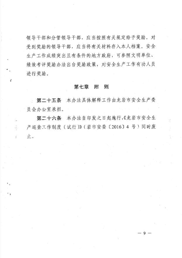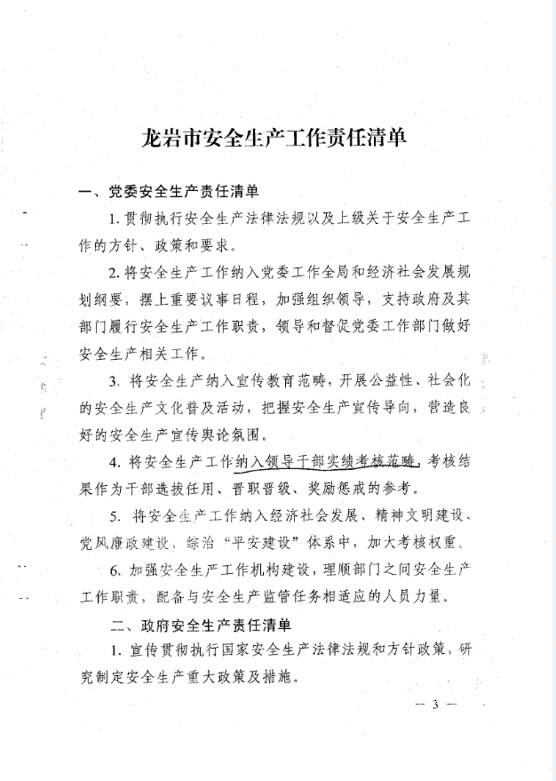 龍巖市安全生產(chǎn)責(zé)任清單及安全生產(chǎn)巡查工作辦法(巖委【2017】45)