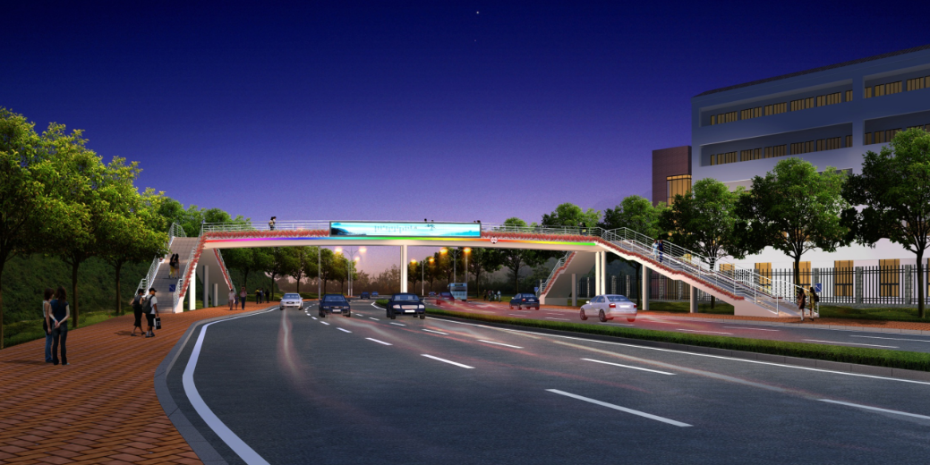 水韻華都人行天橋位于龍騰路水韻華都南側,橫跨龍騰中路。橋長34.4米,寬3.6米,下部結構采用鉆孔灌注樁和擴大基礎,上部結構采用鋼結構,項目總投資約400萬元。項目于2016年4月開工,8月底竣工。項目建成后,可有效保障該片區(qū)行人過街的安全,提高人們出行效率。
