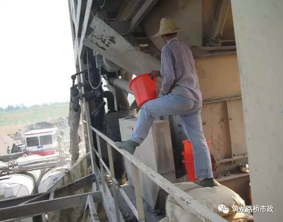 ?。?)從成品料倉放料時,不要每次都將成品料倉中的料放完,由于拌和樓的提升斗向成品料倉放料時總是形成土丘式的離析,土丘的邊緣往往是粗集料,最后放料時總是絕對大多數(shù)為土丘邊緣的粗集料,容易造成鋪出的路面往往有粗集料集中離析的情況出現(xiàn)。