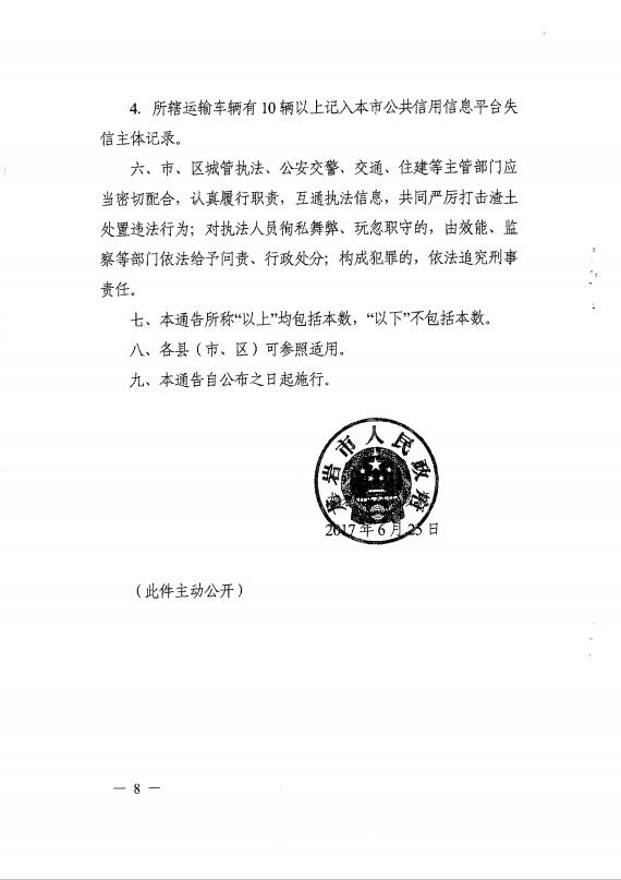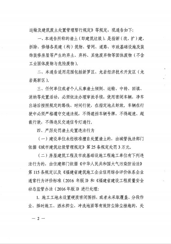 龍巖市人民政府關(guān)于嚴(yán)厲打擊渣土處置違法行為的通告(通告【2017】3號)