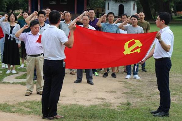 葉坪革命烈士紀念塔前,全體黨員干部面對鮮紅的黨旗,舉起右手鄭重宣誓,重溫入黨誓詞。“我志愿加入中國共產黨,擁護黨的綱領,遵守黨的章程……”錚錚誓言,一字一頓響徹耳畔、融入血液滌蕩心靈。