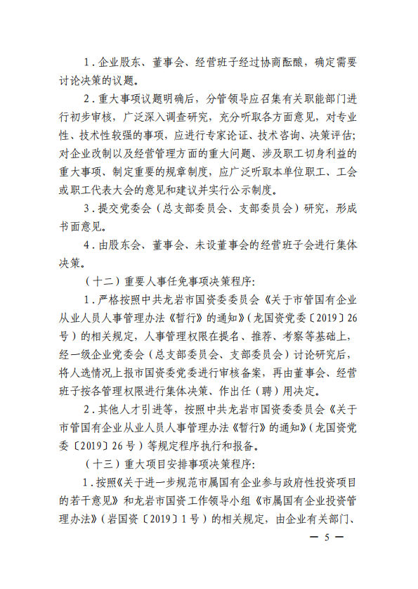 關于進一步規(guī)范市屬國有企業(yè)貫徹落實“三重一大”決策制度實施意見(國資黨委[2020]21號)